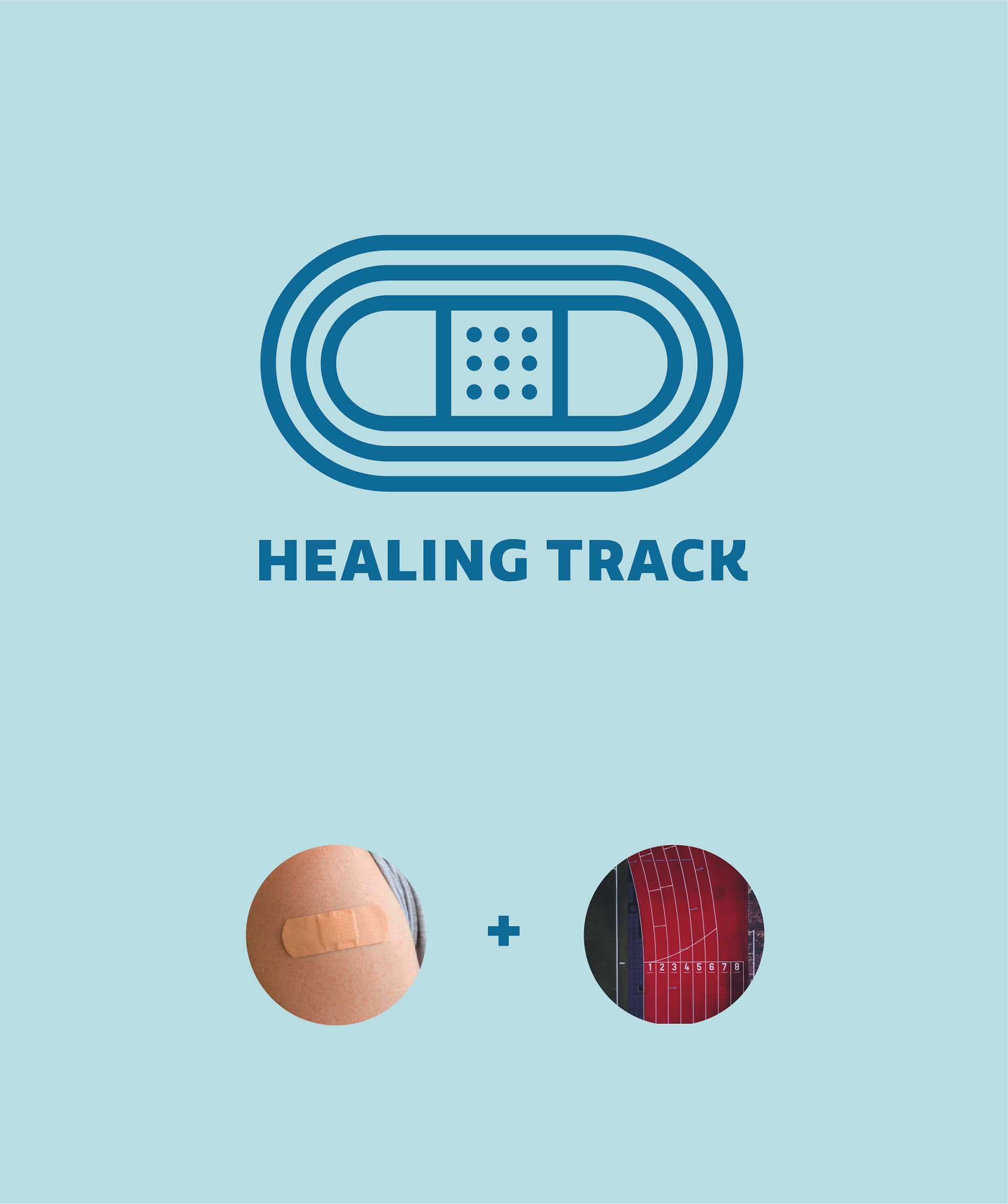 Healing Track is an online training program that helps patients recover mentally from medical procedures. While there is plenty of follow up and support to heal from a specific procedure, there is currently not much of a focus on a patient's mental well-being. The logo combines the visual of a bandaid along with the running track. This program would be a virtual course with nine stages which are represented by the icons below.