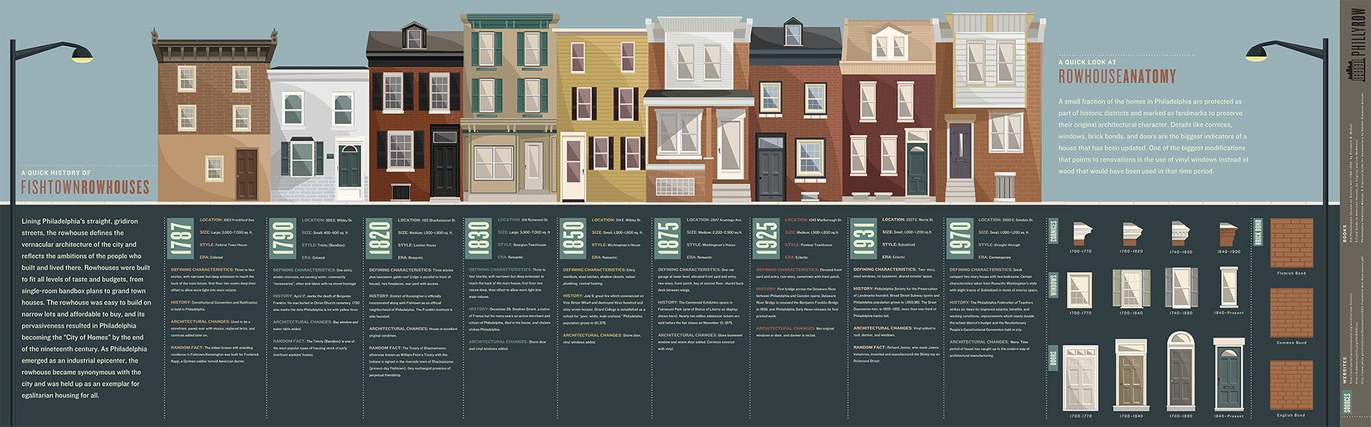 While rowhouses aren’t unique to Philadelphia, they are part of what makes Philadelphia unique. 70% of Philadelphians live in them—but how have they shaped our city? Who built them and who were they built for? Why are there so many of these houses? PhillyRow is an exploration of this versatile and ubiquitous building type. This project is a collaboration between three Temple University professors at Tyler School of Art and Architecture. They are Clifton Fordham (Assistant Professor of Architecture), Abby Guido (Assistant Professor of Graphic and Interactive Design), and Bryan Satalino (Assistant Professor of Graphic and Interactive Design).