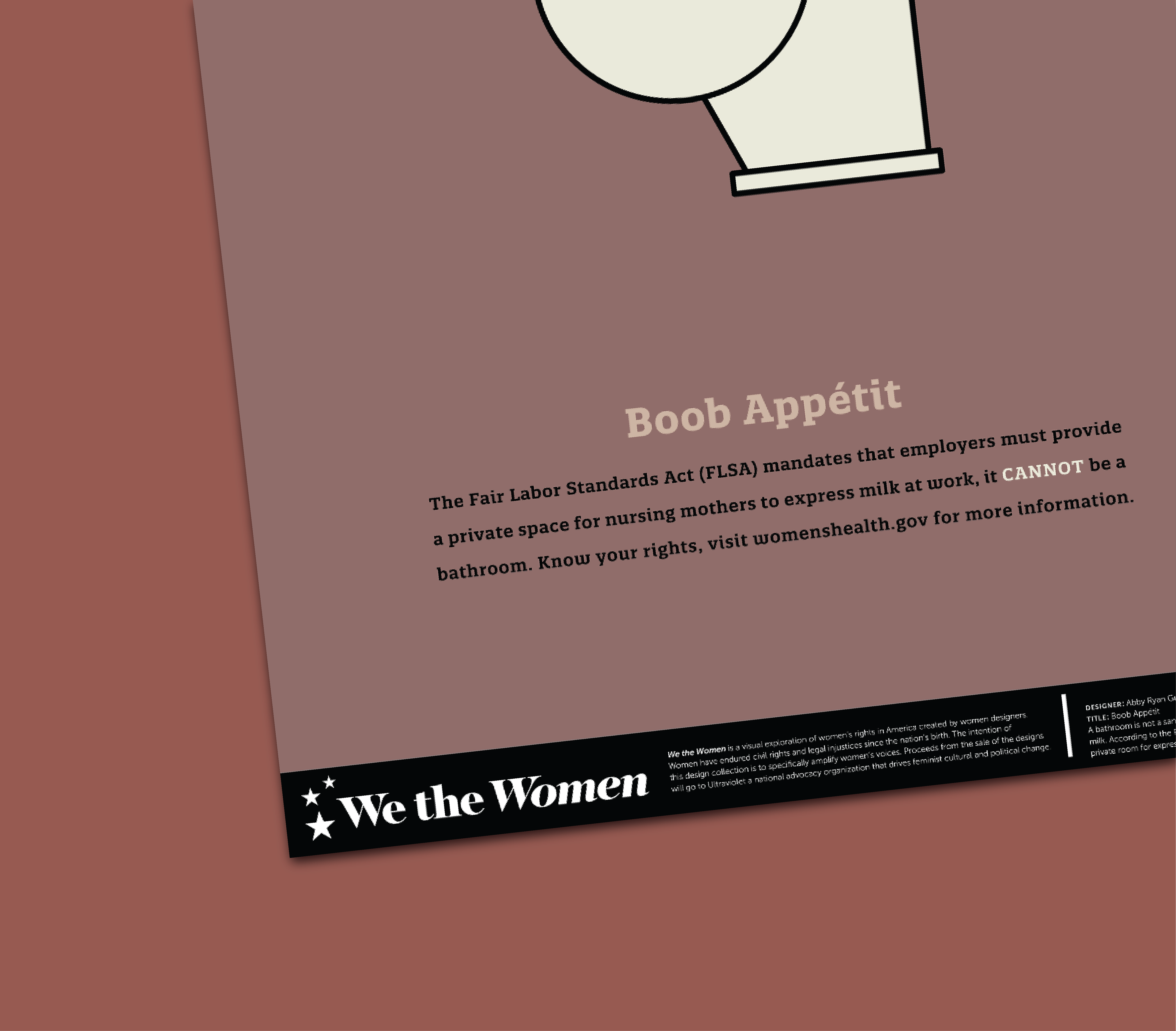 We the Women (https://www.wethewomendesign.com/) is "a visual initiative made up of female, female-identifying and non-binary designers using our talents to bring awareness to the general public focused on women’s rights in the United States of America." The group was founded by Michele Cooper and Kelly Holohan. Kelly and Michele asked Abby to contribute a poster to their initial launch. The poster created addresses issues surrounding breastfeeding.